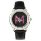 Shock rosa Black Modern Script Girls Monogram Namn Armbandsur