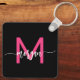 Shock rosa Black Modern Script Girly Monogram Namn Nyckelring