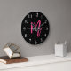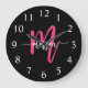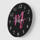 Shock rosa Black Modern Script Girly Monogram Namn Stor Klocka