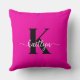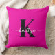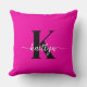 Den här enkla, elegant shock rosa 20-tums dekorativ kudde med det första namn i ett trendig-skriptteckensnitt i vitt och det första i ett modernt teckensnitt i svart är perfekt för dig. Det är snyggt och trendig och ändå väldigt klassiskt. Det kommer att se fantastiskt ut i ditt sovrum, vardagsrum, visningsrum, hon spillde.