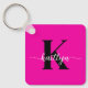 Den moderna nyckelkedjan shock rosa med det första namn i ett trendig-skript i vitt och det första i ett modernt teckensnitt i svart är perfekt för nycklar. Det är snyggt och trendig och ändå väldigt klassiskt.