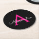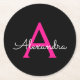 Shock rosa Black Script Girly Monogram Namn Underlägg Papper Rund