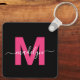 Skapa Snyggten Modern Anpassningsbar Black and Rosa Monogram Square Keychain. Den här eleganta nyckelkedjan med kvadratiska nycklar ger en modern och personlig beröring åt dina vardagsbehov. Utformningen har ett fet shock rosa monogram som inledningsvis är centrerat på en solid svart bakgrund, med ditt namn i ett vitt skript som är elegant och som är skrivet över den. Samma rena och snyggt monogramdesign visas på båda sidor för ett polerat och gigantiskt svart och rosa utseende. Perfekt för alla som kärlek i roligt och feminin stil är denna nyckelkedja för personlig både praktisk och chic. All färg kan anpassas så att du kan skapa en version som passar ditt utseende. Underbar för födelsedagar, helgdagar eller bara för att - den här anpassningsbarnas engramsnyckelkedja gör en tankfull gåva eller ett snyggt till behållan av nycklar, säckar eller tillbehör.