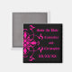 S Spara magneten Date bröllop för att anpassa den till svart med en geometrisk blommdesign på den i ljusa shock rosa. Detta är den version som har plats för längre namn.