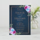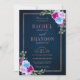 Shock rosa Blommigt Bronz Navy Blue Rustic Bröllop Inbjudningar