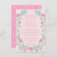 Dö in i contemporaryns elegans med det här detaljkortet som är skräddarsytt för romantiskt vår/sommar bröllop. Det här kortet lyfter fram ett subtilt mönster med häftiga rosa och blommigtar för tealgrönt, och ger dig möjlighet att anpassa din upplevelse. Lägg till namn från bruden och brudgummen på baksidan för att få en verkligt unik beröring, vilket förbättrar den övergripande moderna sofistikeringen av bröllop firande.
