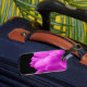 Shock rosa-blommor på svart bagagebricka
