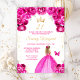 Den här eleganten och det glamorösa födelsedagsfest inbjudan har en vacker prinsessa med blonda hår i en shock rosa boll-grynt. Texten kombinerar handskript och modernt sans serif typsnitt för ett klassligt och sofistikerat utseende. Blommigten, fjärilen och guld-konetti skapar perfekten blandning av rustika och chic. Grafik efter www.etsy.com/uk/shop/SunflowerDayLove