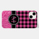 Skapa din egen personlig monogram svart, vit och shock rosa fodral. Utformningen har en gingham eller buffel plaid mönster parad med en tonad bågoskärpa glitter (skapat från ett foto). Prova ett annat teckensnitt eller färg eller stil för ditt eget namn och börja om du vill. Svartvit och skiljelinjen är också anpassade.