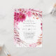 Utformningen har en utskriven färgad med blommigt inslag i skuggor av shock rosa och rosa över blad löv gren krans och krysanthemumblommor på en ljus rosa vattenfärgbakgrund. Underbar för bröllop firande!