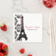 LÄGG TILL NAMNEN FÖR BRIDEN OCH GROOM OCH DERAS BRÖLLOP-DATUM TILL DESSA CHIC OCH SÖT PARISIAN OCH FRANSK SOM HÄTADE BRÖLLOP PAPPRA NAPKINER MED EN EIFFEL TORN PÅ EN ELEGANT BLACK OCH VITE DAMASK-BLOMMIGT BAKGRUND OCH UTTRYCKT RIBBON-LOKKONSTRUKTION I EN HUS . DESIGNAD AV CHRISSY H. STUDIOS, LLC. ALLA HÖGER RESERVERADE.