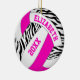Den här fetstilta prydnaden i zebra ränder-flickans volleyball-keramik har en vild svart och vit zebra ränder mönster på fyra av volleyballpanelerna plus anpassade player namn och jersey-nummer - du kan anpassa bakgrunden till färg, som visas här i ljusstark shock rosa, och texten färger, som visas här i rosa - klicka på "Anpassa" för att enkelt ändra bakgrunden och texten färger för att matcha eller blanda den med olika färger! av katz_d_zynes!