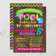 Bassäng födelsedag, shock rosa, lila, teal, gult och kalk färg med träbakgrund som passar alla åldrar. Lägg till en egen ordalydelse i mallen, om du vill göra mer anpassning (teckensnitt färg, teckensnitt stil, bakgrund), klicka på anpassa, rulla ned och klicka på länken "klicka för att anpassa ytterligare":