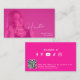 Elegantens moderna fotogenomskinliga överlägg med handskriven kalligrafi namnteckning skript namn shock rosa och vit skönhetssalon social mediainfluencer visitkortsmall med skanning av QR-kod till webbplats, katalog eller portfölj och ditt anpassningsbar-foto. +++++++++ Passar för skönhetsvård eller professioneller som påverkar medierna i social: makeup artists, frisisters, nageltekniker, lash and brows specialists, mode, lipasdistributörer, personliga stilister eller livsstilsrelaterade bloggare.