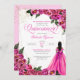 Shock rosa Fuchsia Ro & Guld och Gown Quinceañera Inbjudningar