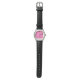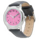 En skarp, solid färg "Shock rosa" Girls' rostfria, svarta läderremsa. Shock rosa är en ljusrosig rosa. Klicka på "Anpassa" om du vill ändra färg eller lägga till ett mönster eller en design. Produkthexkod: #ff69b4