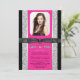 Söt 16-partsinbjudan med söt shock rosa på eleganten svart och silver glitter med vacker glansig svart båge. Denna vackra födelsedagsfest inbjudan i shock rosa sweet sixteen är lätt att anpassa med din foto- och händelseinformation i teckensnittet stil och färg, och med den ordalydelse du väljer. Du kan också ändra bakgrunden till färg på elegantens tillkännagivande av shock rosa studenten.