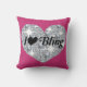 Lägg till lite glam till ditt hem med den här shock rosa fyrkantiga kudden med ett faux rombt hjärta med I Kärlek Bling-text. Titta noga för att se hjärtat bestå av massor av små faux-diamanter.