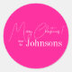Detta är ett modernt God jul-mönster. Det är i trenden mot shock rosa och vitt och har budskapet "God jul! från Johnsons". Perfekt för din julklapp, sändningstillbehör, kuvertsälar och fester gynnar sälar den här festsäsongen. Om du vill anpassa dig lägger du bara till ditt namn i textrutan Anpassa. Här kan du också ändra resten av texten om du vill. Om du vill ändra färg eller teckensnitt markerar du verktyg som redigerar designen. God jul! Om du vill ha hjälp med att anpassa, matcha produkter eller ett anpassad design-e-postmeddelande: ursuladawnmoon@gmail.com