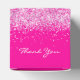 För en 21:a (eller någon annan ålder) födelsedagsfest gynnar. Trendigets shock rosa-bakgrund färg. På framsidan och baksidan: Texten: 21:a födelsedagen och Tack är skriven med ett modernt handskript i stil. Dekorerad med rosa CONetti. Anpassa och lägg till ett namn och ett datum. Rosa färgad text.