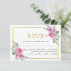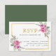 Svarskort på shock rosa vattenfärgsblommor och bröllopet OSA guld ram blommigt med val av måltid. Den här eleganten utformar visningar i guld ram och hett och rosa vattenfärgen påverkar blommor och självklar löv på den övre högerna och grund lämnat hörnen och texten i guld och svart.