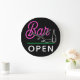 Shock rosa Lime Green White Retro Pub Open on Blac Stor Klocka