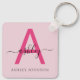 Shock rosa Modern Script Girly Monogram Namn Nyckelring
