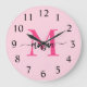 Shock rosa Modern Script Girly Monogram Namn Stor Klocka