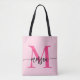 Shock rosa Modern Script Girly Monogram Namn Tygkasse