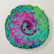 Shock rosa och blå Groovy Abstrakt Retro Swirl Rund Kudde