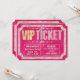 Den här glamorösa, gigantiska anpassningsbarna-festinbjudan har en lätt tittar utformning, Hollywood stil. En gräns av rosa diamanter ramar är inbjudningen. Ord Biljett trycks i mönster i glitter och VIP trycks i guld. Bakgrunden är en luxuriös shock rosa-pärldesign.