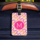 Shock rosa och Orange Chevron Wave Mönster Monogra Bagagebricka