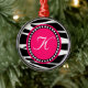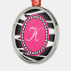 Shock rosa och sebran görar randig den Monogrammed Julgransprydnad Metall