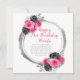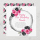Snyggt födelsedagskort med faux ram i shock rosa och silver med blommigt blomsterarrangemang. Perfekt för en födelsedagsfest. Ord kan ändras till kostym med dina egna uppgifter eller krav