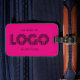 Shock rosa och svart modern rektangulär Logotyp Bagagebricka