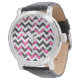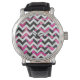 Shock rosa och svart utskrift av skvroner armbandsur