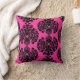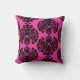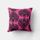 Shock rosa- och svartdamastdekorativ kudde