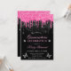 Shock rosa och svartvita Glitter Quinceanera Inbjudningar