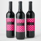 Shock rosa och vit polka punkt med svart vinflaska etikett