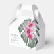 En underbart livfull tropisk design med vattenfärg Monstera löv som är förskönad med shock rosa-fuchsia orchids. En textmall finns med för att anpassa den med namnen eller annan önskad text för bruden och trippen. Om du vill ta bort exempeltexten markerar du "klicka för att anpassa ytterligare" och kan ta bort valfri text. Observera att storleken på den här förmånslådan är 4 tum x 2,5 tum x 5 tum h. De är små, men har en fin inverkan och är av hög kvalitet.
