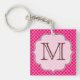 Shock rosa Quarterfoil Lattice Quarter Foil Personlig Anpassningsbar Fabric mönster Monogram Initial Nyckelring