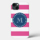 Shock rosa Rand Mönster, marinblått monogram