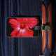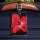 Shock rosa Red Hibiscus blomma på Black Bagagebricka