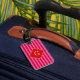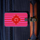 Shock rosa, Red Rand, Red Quatrefoil Monogram Bagagebricka