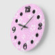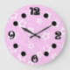 Shock rosa retro polka dots med blommönster stor klocka