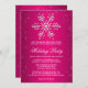 Fira säsongen med kärlek och bra jubla med denna elegant och festliga, vita snöflingor julfester med en söt leafy-mönstrad snöflake och hjärtformade isreflektioner och snö reflektioner bakom den. Den här vackra smycken tonad shock rosa fuchsia hued färg-bakgrunden ser ut som den glöms. Perfekt för en formell halvformell eller svart middag och dansarrangemang med en vinter under himmelsk jul eller helgdag nöjeskontors- eller företagskontor i party. Bild © Krissy H. Studios, LLC. Alla höger reserverade.