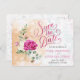 Vackert vykort i bröllop spara datum med en vattenfärgad blommigt som innehåller shock rosa blommor, blek ro, mjuk grönt eucalyptus löv och färglöst pastellstänk. Lätt att uppdatera fram och tillbaka med ditt personliga meddelande!