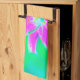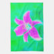 Shock rosa Stargazer Lily om turkos och Grönt Kökshandduk