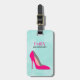 Personligens bagagetapp med en bild av en shock rosa som stiletto shoe. Ange vattenfärgsbakgrund för myntgrönt. Chic och glamorös.