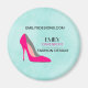 Affärsorienterad magnet med en bild av en shock rosa som ska skon. Ange vattenfärgsbakgrund för myntgrönt. Chic och glamorös. Anpassa med namn, webbplats och rubrik eller annan använda.